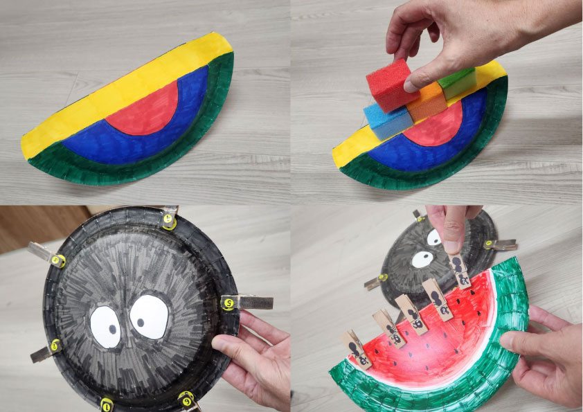 お子さまの手指の発達をサポートするために、スタッフが一つひとつ手作りした遊具を使って活動しています。 楽しみながら自然と微細運動を促がす工夫がたくさん詰まっており「できた!」の体験が自信につながります